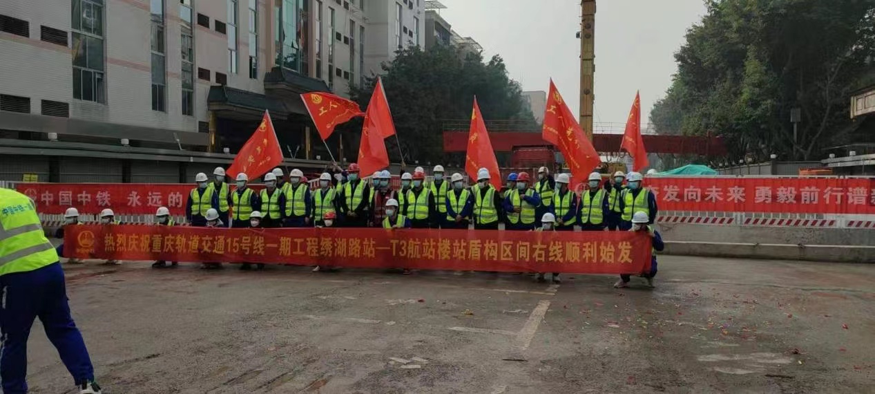 土建03標現場監理人員組織繡湖路-T3航站樓盾構始發節關鍵節點驗收,并參加首發儀式