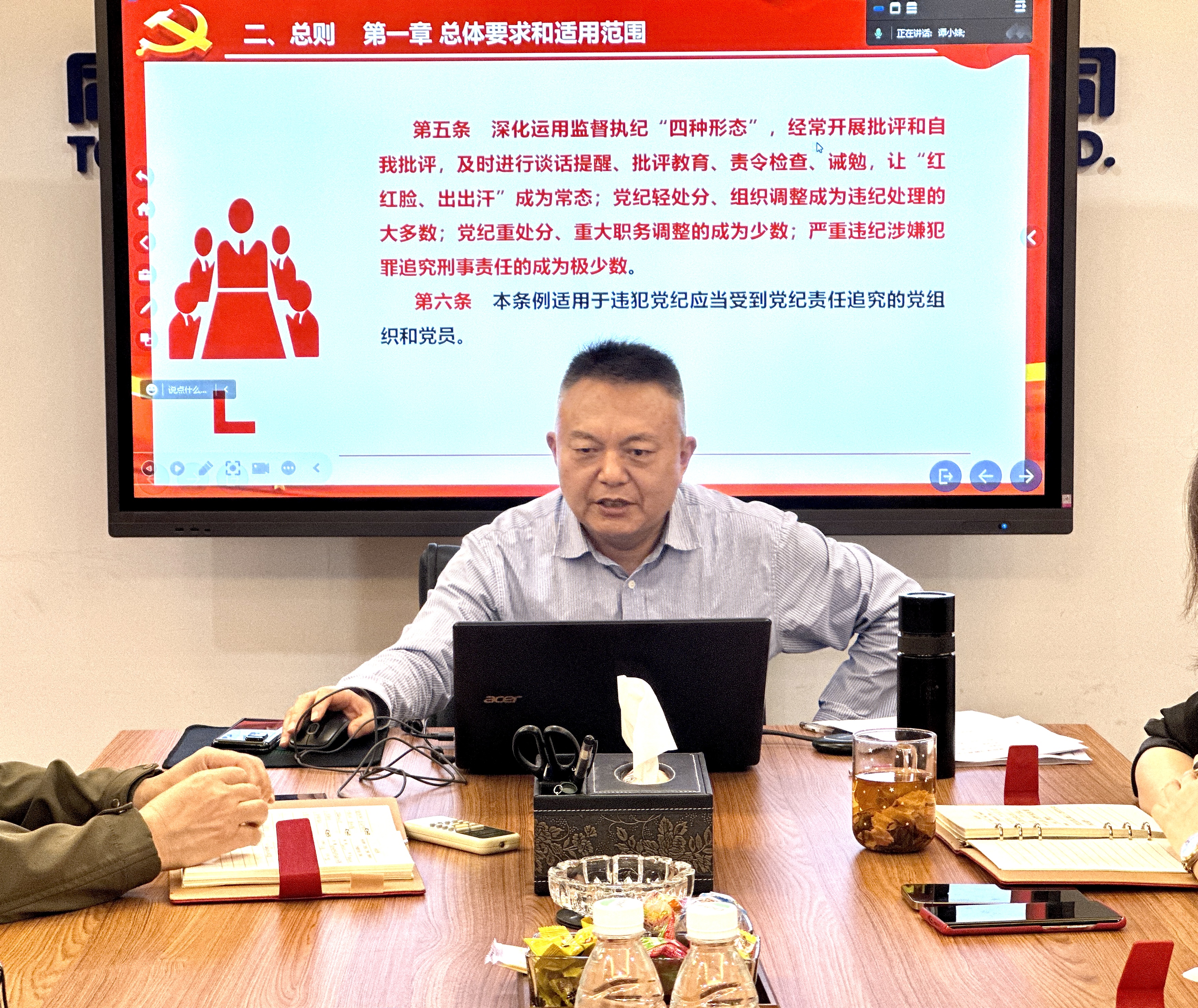 黨紀是黨的生命線,也是全體合格黨員應遵循的基本準則。自《條例》修訂印發以來,同致誠黨支部高度重視,及時將《條例》列入黨員理論學習內容,以個人自學、集中學習、線上線下結合學習等,教育引導廣大黨員學紀、知紀、明紀、守紀,力求把學習成果盡快轉化為推動工作發展的強大動力。