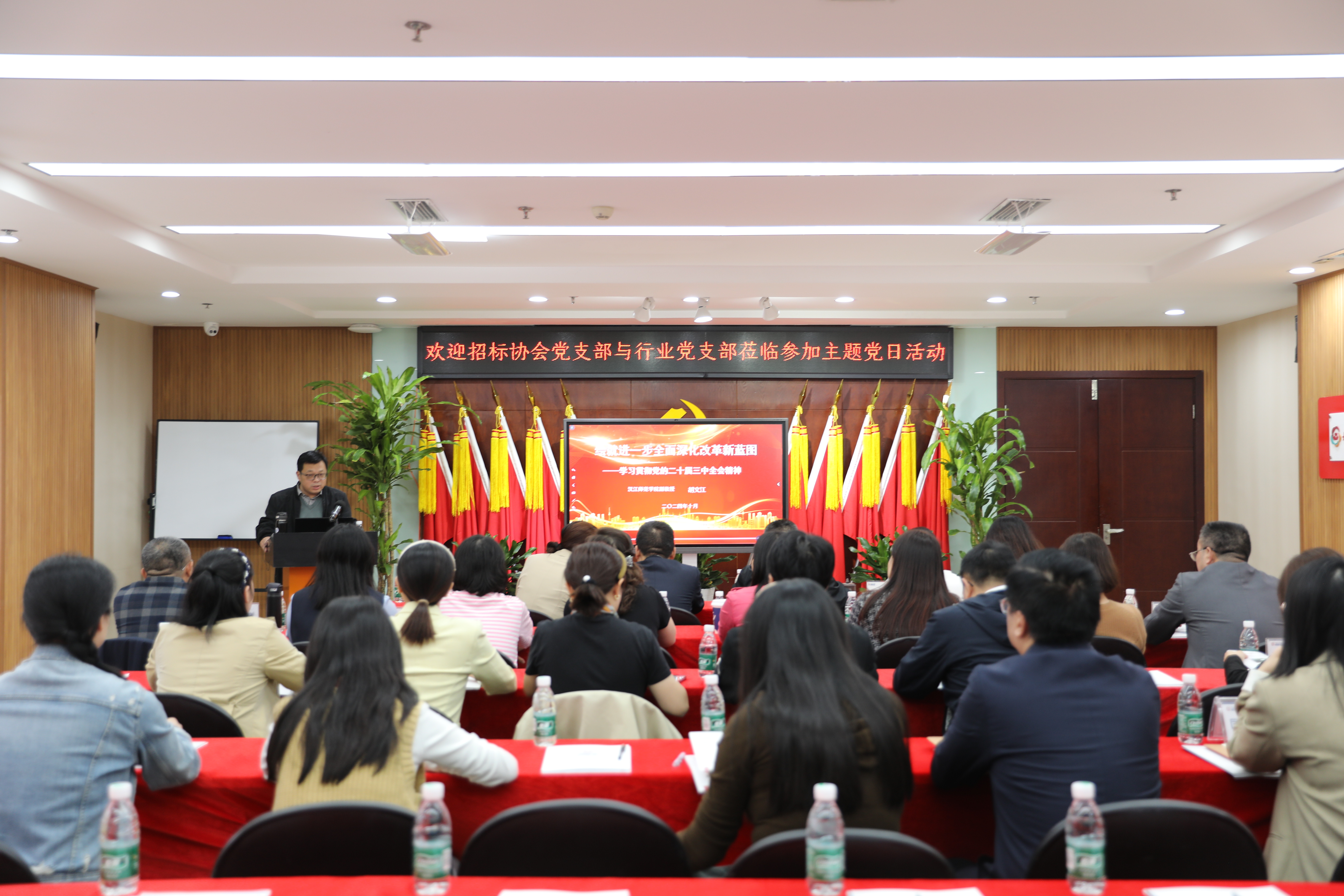 本次活動特邀請到漢江師范學院副教授胡文江出席,市招投標協會會員單位黨支部參與。整個活動安排緊密有序,旨在深化黨員對黨的二十屆三中全會精神的理解,激發行業創新活力,推動招投標行業再上新臺階。