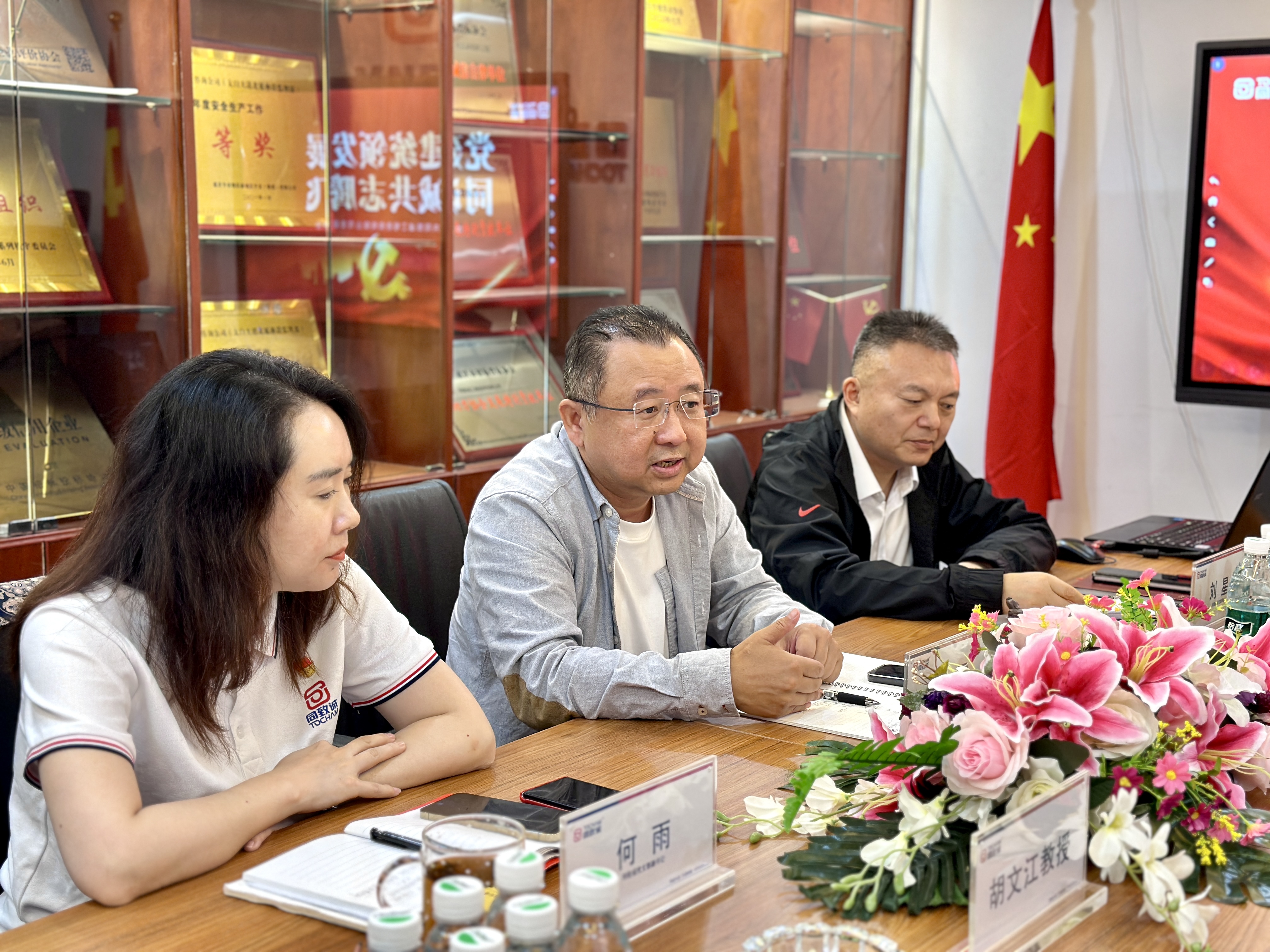 會后,胡教授、李會長等還與同致誠董事長張雷、劉書記進行深入的溝通。劉書記并就黨建工作的開展從特色做法——“雙強雙帶”、“黨建共建”等做細致全面的匯報。