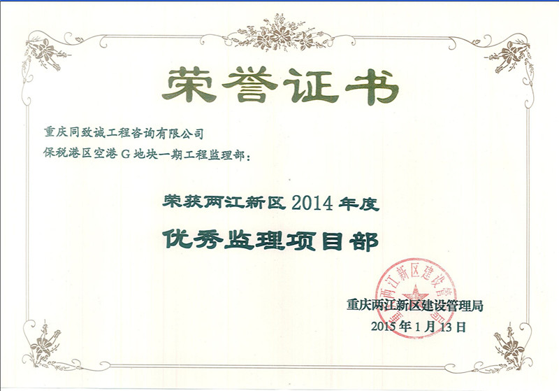 2014年度優(yōu)秀監(jiān)理項目部-保稅港區(qū)空港G地塊一期
