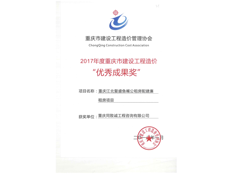 2013潼南電力新村商住樓優(yōu)秀成果獎