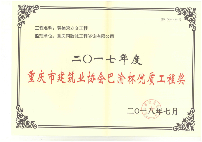 2017年度重慶巴渝杯優(yōu)質(zhì)工程獎-黃角灣立交