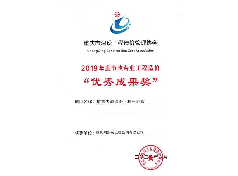 2019年度市政專業(yè)工程造價優(yōu)秀成果獎-椿萱大道道路三標段