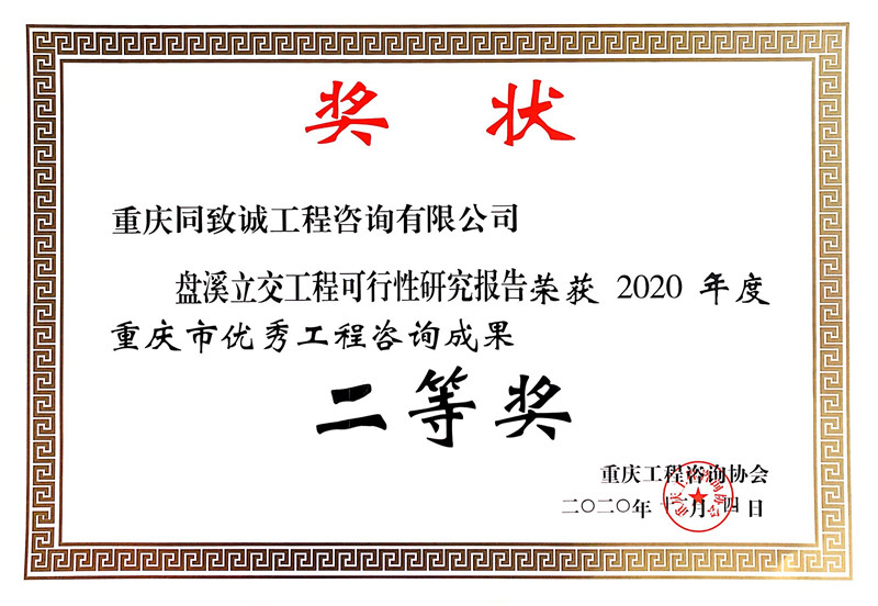 2020年盤溪立交可研優(yōu)秀成果獎二等獎
