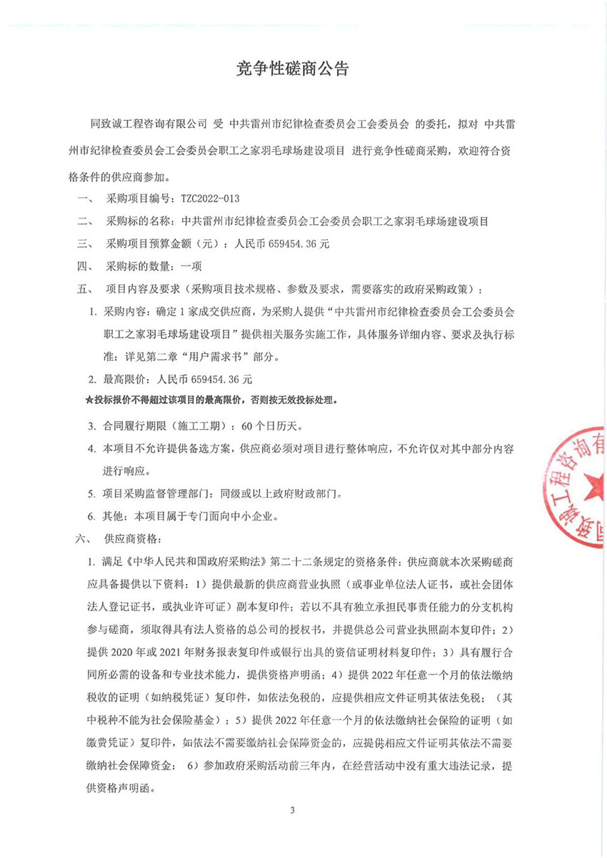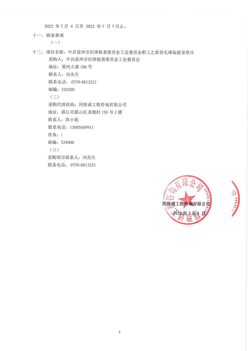 中共雷州市紀(jì)律檢查委員會(huì)工會(huì)委員會(huì)職工之家羽毛球場(chǎng)建設(shè)項(xiàng)目