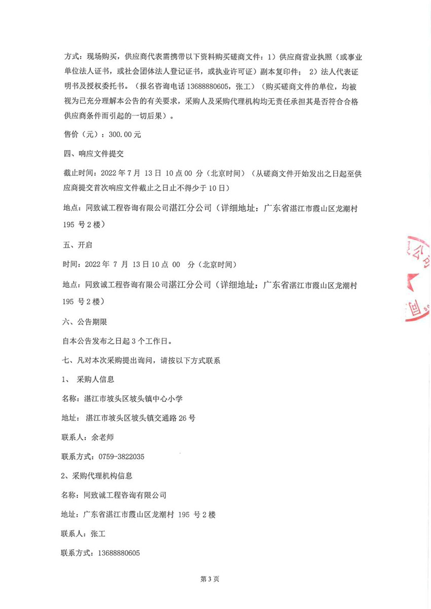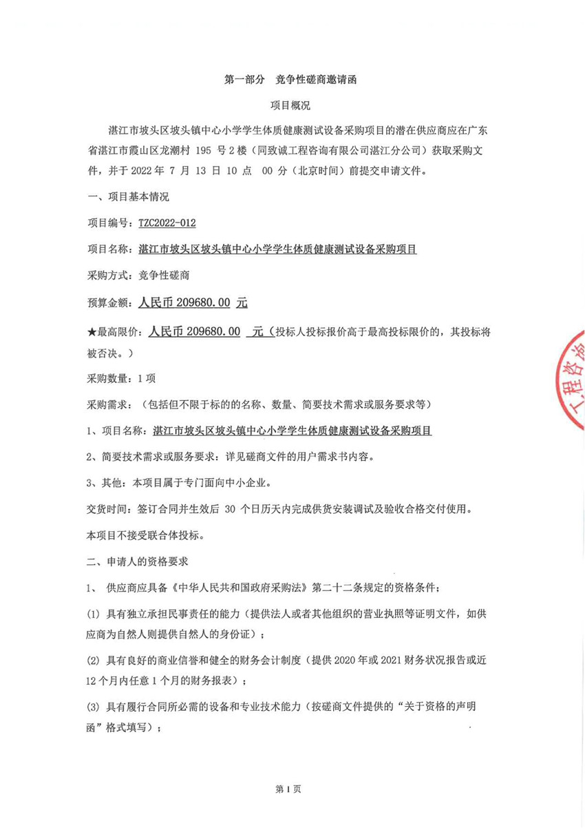 湛江市坡頭區坡頭鎮中心小學學生體質健康測試設備采購項目