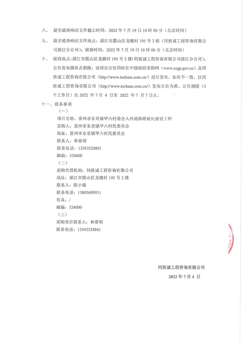 雷州市東里鎮甲六村委會入村道路硬底化建設工程