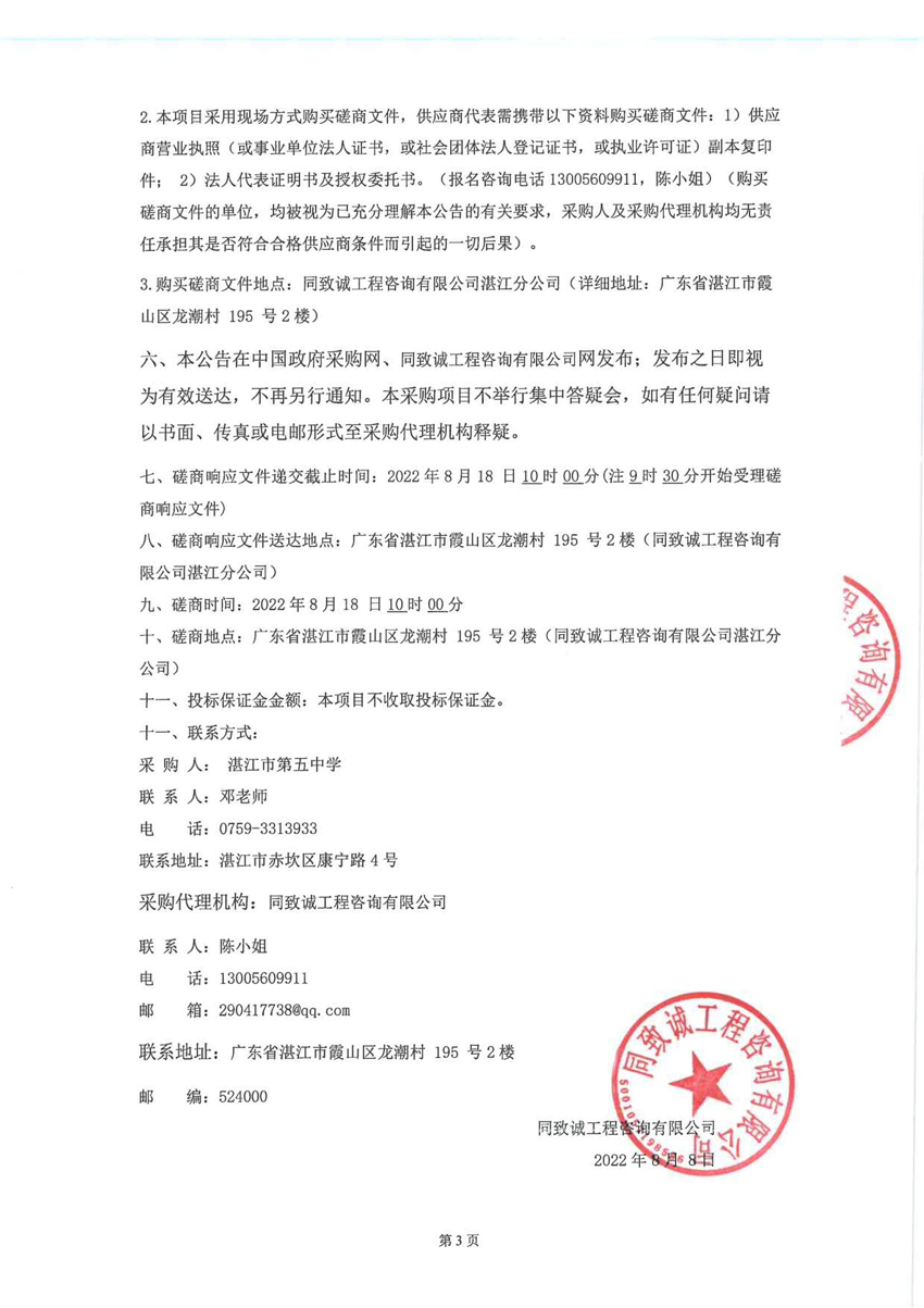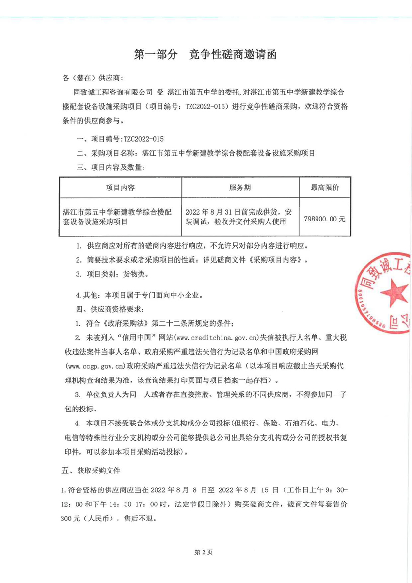 湛江市第五中學(xué)新建教學(xué)綜合樓配套設(shè)備設(shè)施采購項(xiàng)目