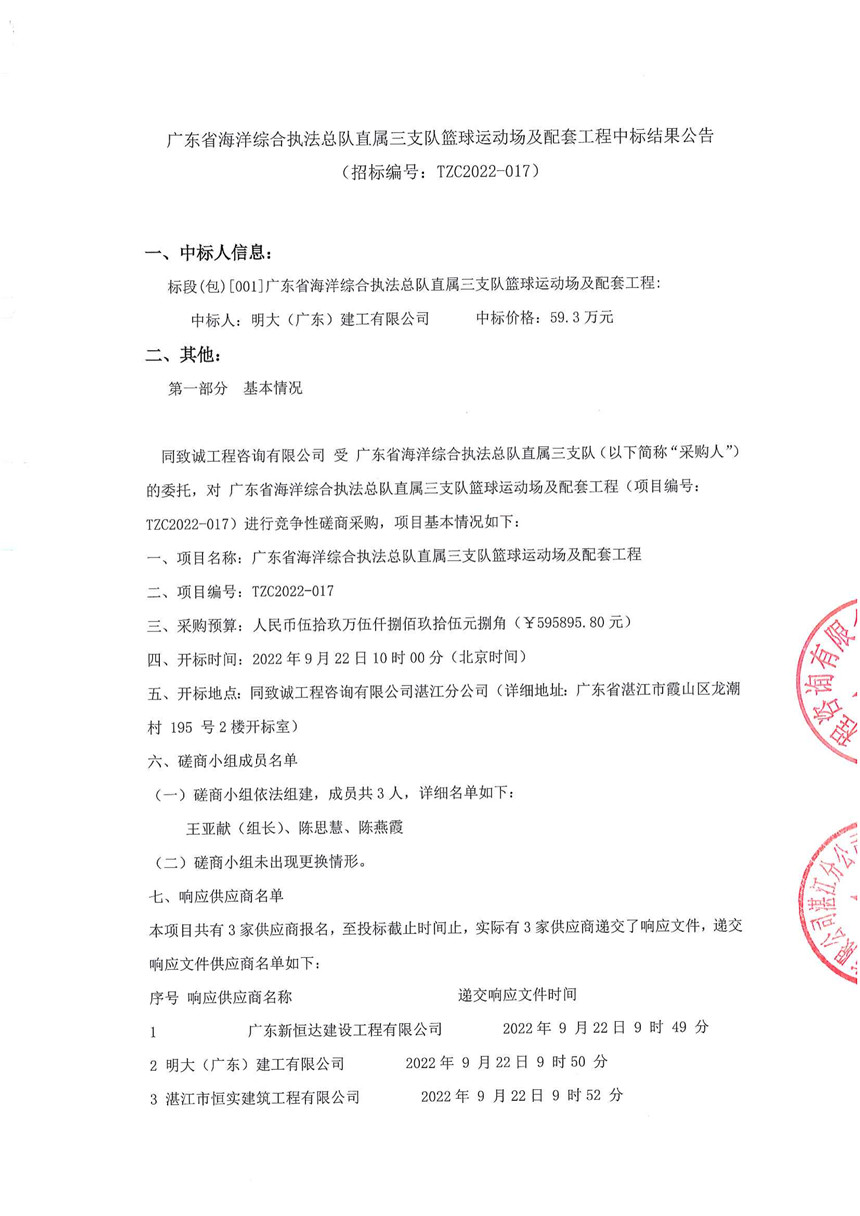 廣東省海洋綜合執法總隊直屬三支隊籃球運動場及配套工程