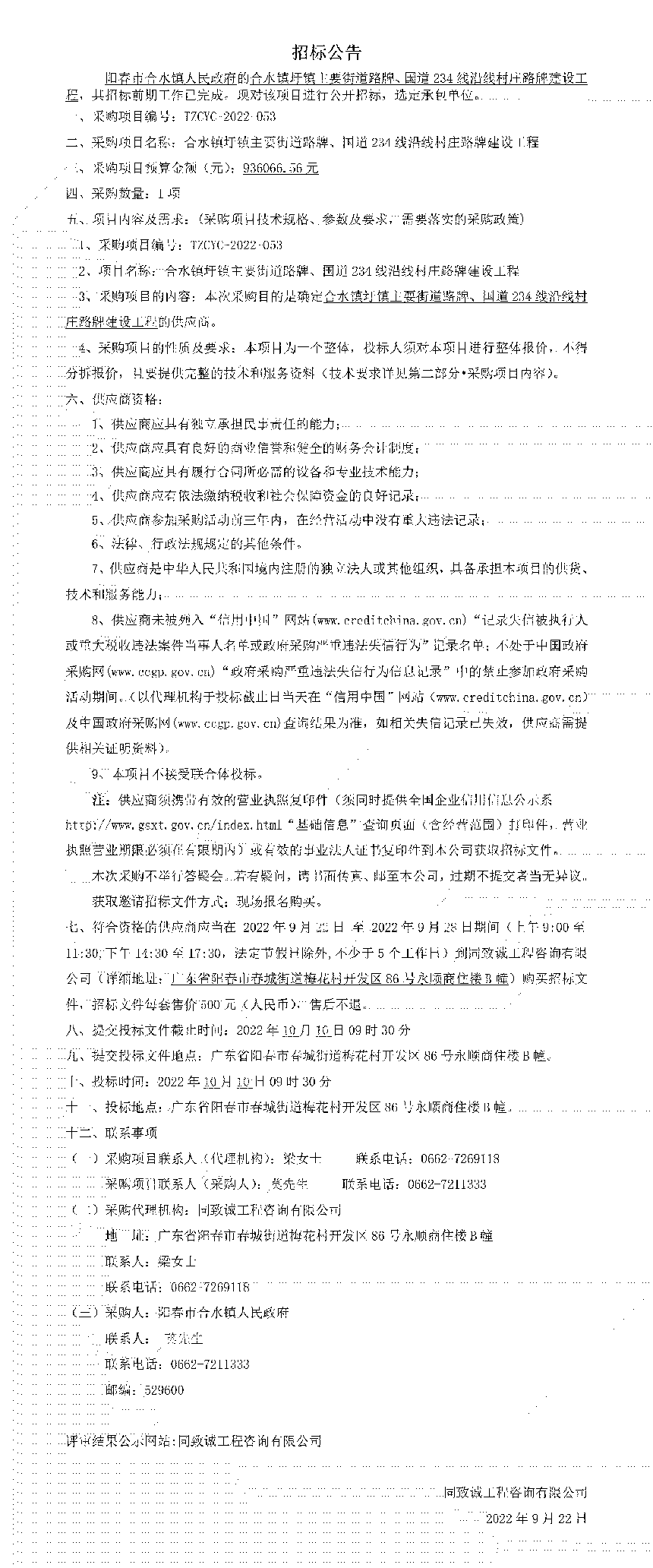 合水鎮圩鎮主要街道路牌、國道234線沿線村莊路牌建設工程