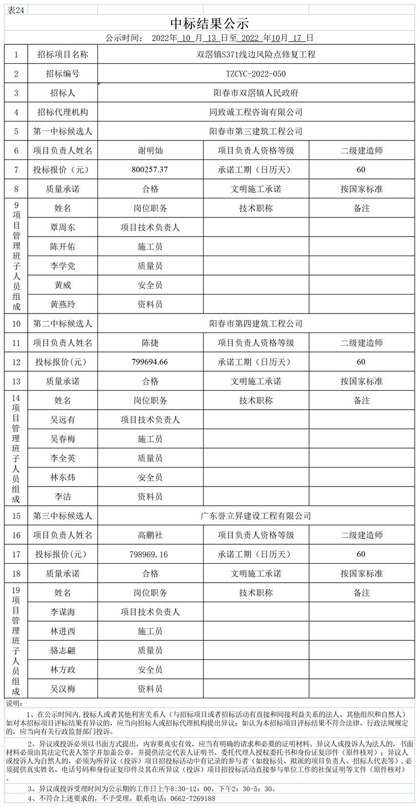 中標公示