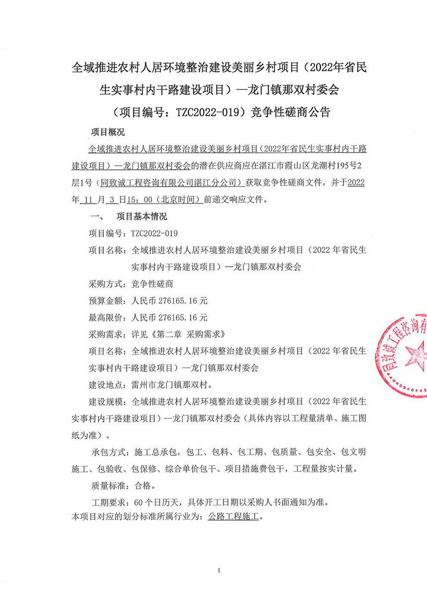 全域推進(jìn)農(nóng)村人居環(huán)境整治建設(shè)美麗鄉(xiāng)村項(xiàng)目(2022年省民生實(shí)事村內(nèi)干路建設(shè)項(xiàng)目)—龍門鎮(zhèn)那雙村委會(huì)