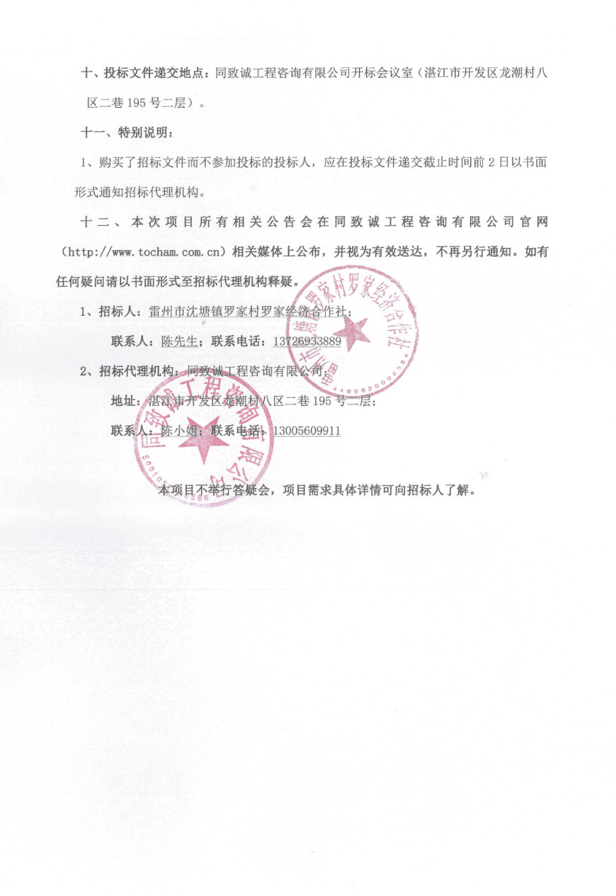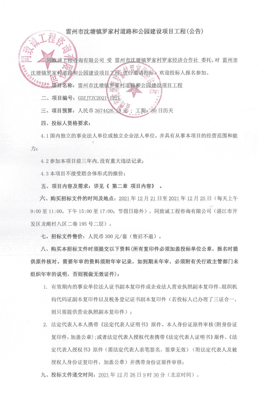 雷州市沈塘羅家村道路和公園建設(shè)項目工程公告